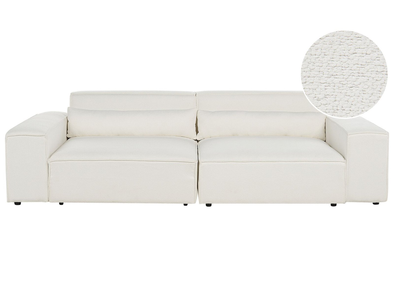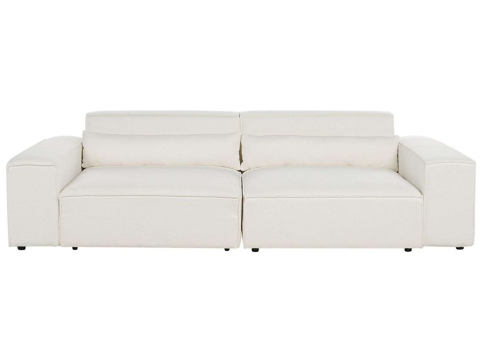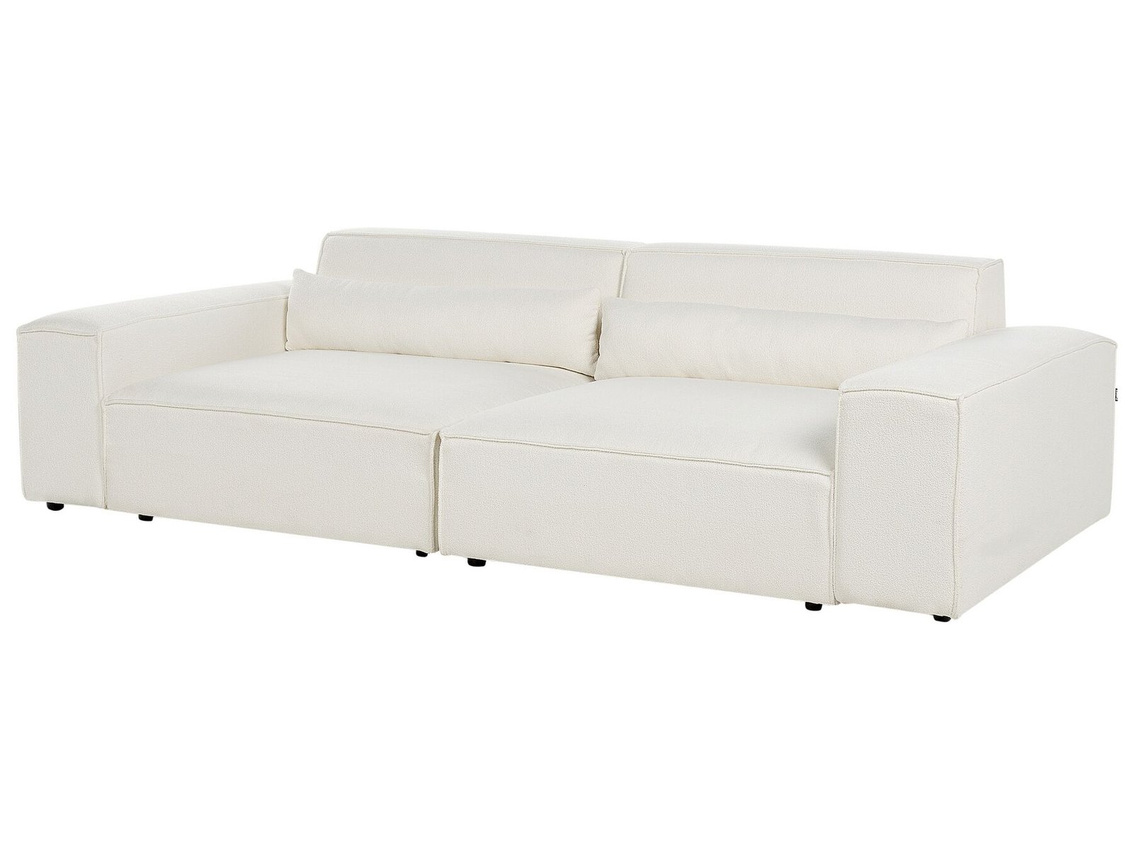 This sleek 2 Seater Minimalist Sofa will add comfort to your house. 2 Seater Minimalist Sofa provides unmatched comfort with its sleek design and thick foam seating. The lower back region is further supported by the two long scatter cushions that are offered. The sofa has a contemporary aesthetic with a hint of refinement, thanks to its soft, boucle upholstery with a delightful texture.