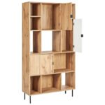 This Blend Storage Bookcase offers both exhibition space and hidden compartments to keep everything organized, making it the ideal combination of open and closed storage. The sleek metal legs lend a light, airy touch, and the warm wood impression and delicate black embellishments create a contemporary yet welcoming appearance. It is a chic and useful option for a living room, home office, or creative place because it is made of laminated particle board.
