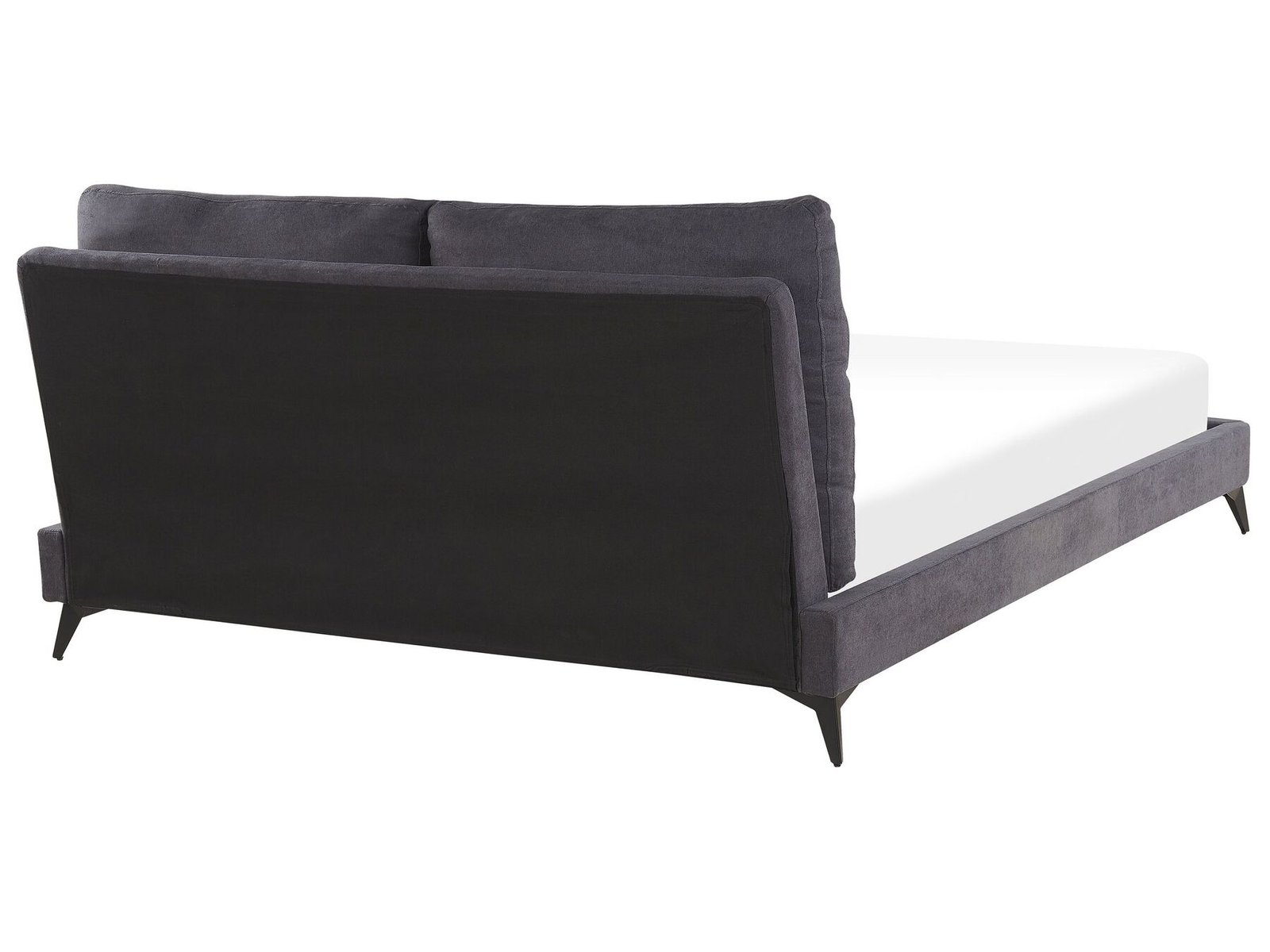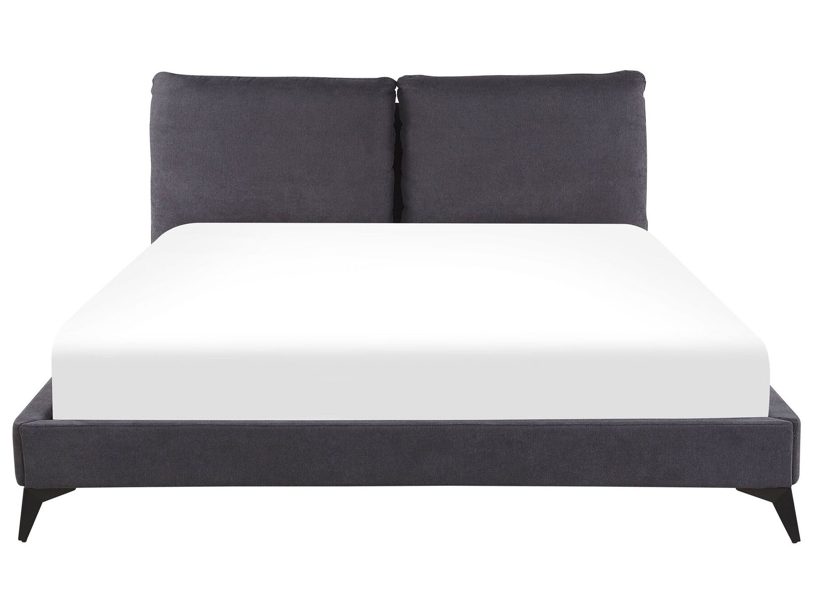 Upgrade the appearance of your bedroom with this Mild Upholstered Bed. Its soft-touch upholstery complements a wide range of décor styles, but it looks especially good in Scandinavian and retro-inspired settings. Comfort will also be enhanced by thickly padded pillows that are zip-fastened to the headboard. The black legs that hold the frame create a striking contrast to the color of the bed.